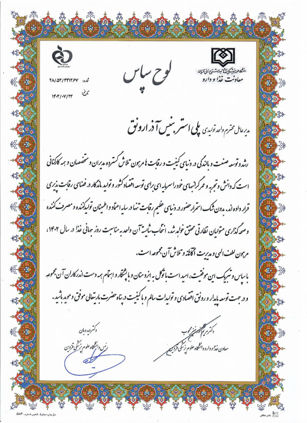 شرکت پتکو واحد برتر از معاونت غذا و دارو استان قزوین